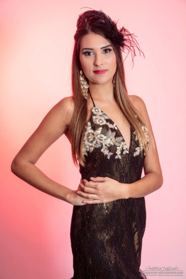 Ambre, danseuse orientale est vêtue d’une robe baladi, la robe traditionnelle de la danseuse égyptienne. la Robe Orchidées ornée de strass est une robe de danse en maille lycra poudré, un tissu très brillant et[…]
