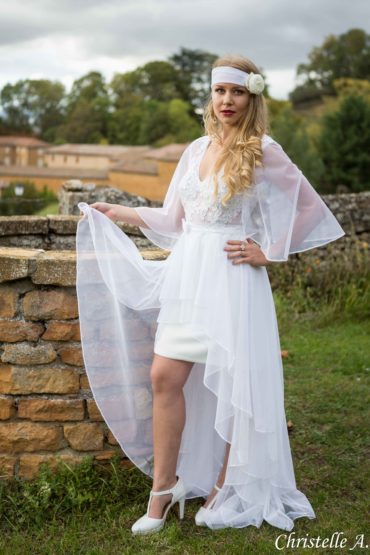 Une robe pleine d’élégance, de légèreté, fraîcheur et transparence ! Confectionnée dans une très belle dentelle italienne avec détails brodés sur l’encolure , la taille et un dos à grande goutte : des manches châle, […]